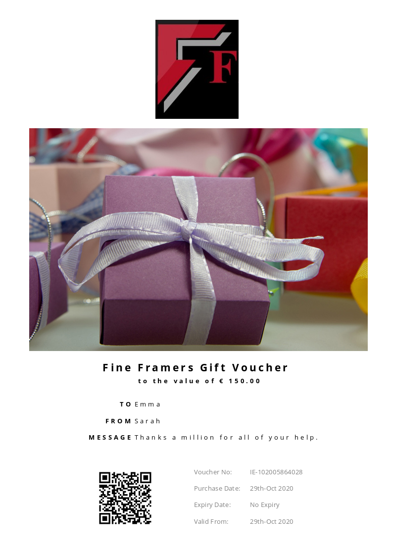 Fine Framers allows you to purchase instantly printable gift vouchers, special offers and tickets using the Voucher Connect platform.
